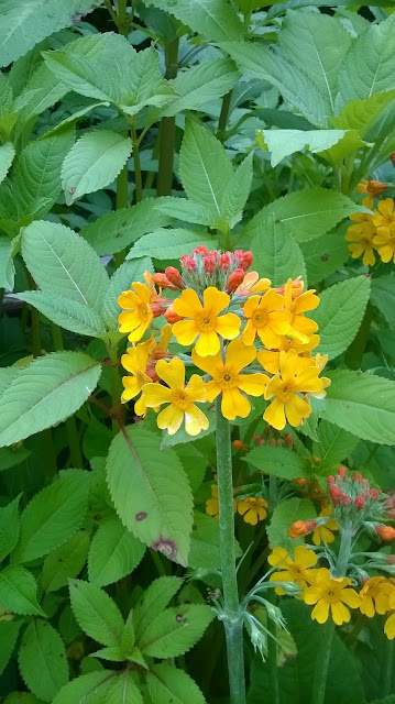 A neglected corner near the House, yielded two interesting garden escapes. First up was a cultivar of Bistort (Persicaria bistorta 'Superba'), then four stunning plants of Bulley's Primrose (Primula bulleyana). The latter is not on the British list yet, although there is a record for Isle of Man (not part of the UK).